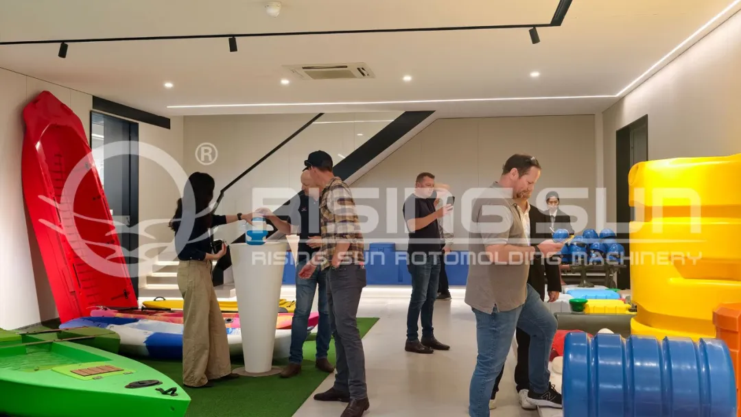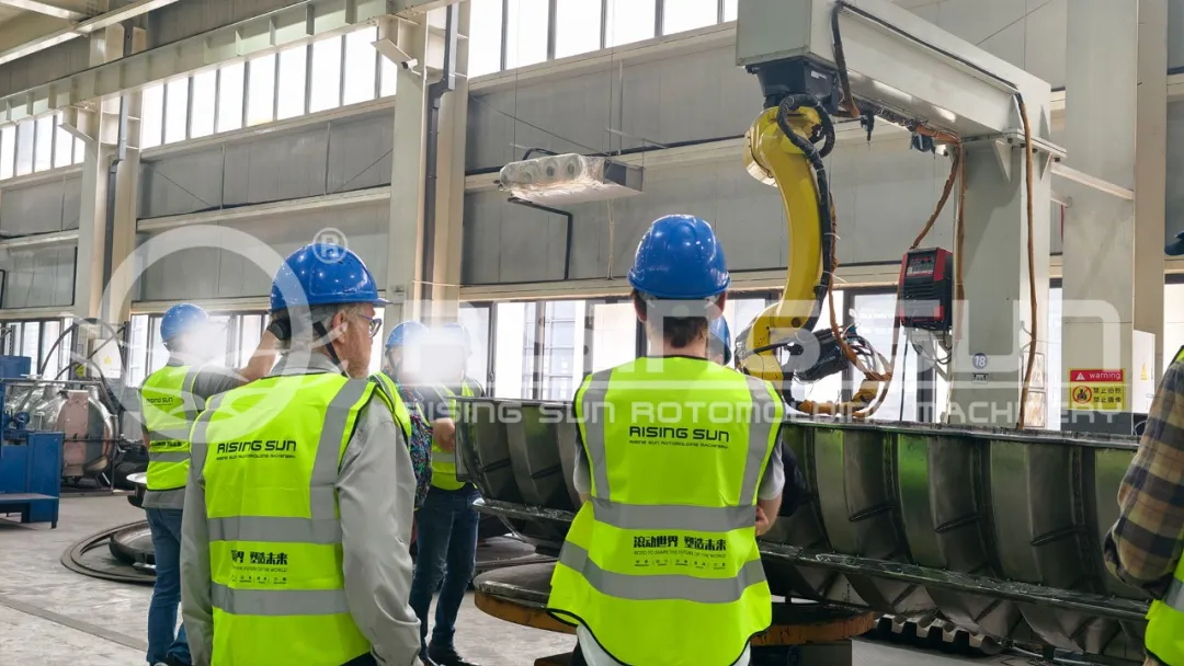 展会前夕,大批海外客商提前奔赴公司实地考察,为本次行业盛会提前蓄力。多国客户组团深入生产车间、研发实验室、成品展示区域,近距离实地考察滚塑全流程生产工艺、自动化设备配置、一体化定制产能。